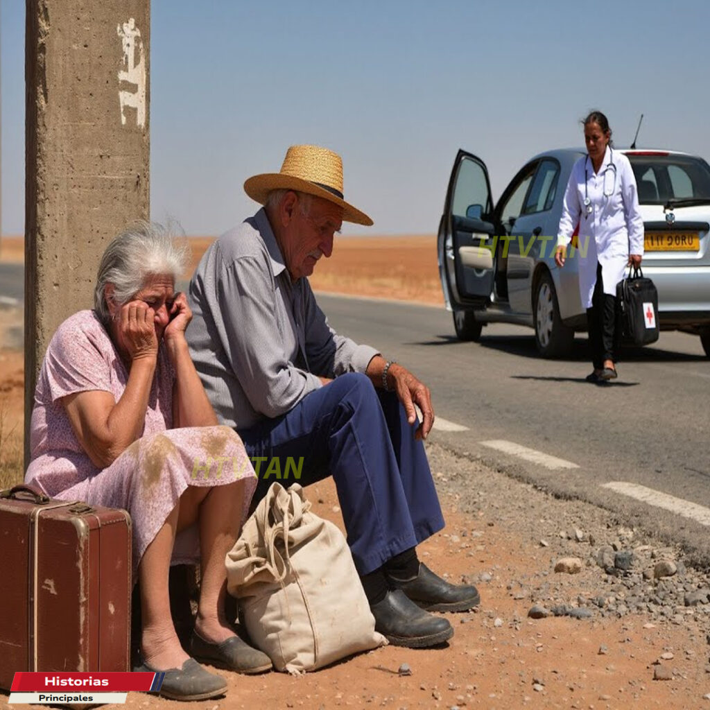 hombre de edad avanzada con sombrero de paja, ambos rodeados de bolsas de tela raídas y una maleta pequeña que parecía haber visto mejores tiempos. Algo en aquella escena me oprimió el corazón. No era normal ver a personas de esa edad bajo el sol abrasador sin ninguna protección. Detuve el auto en el arsén y bajé. El polvo se levantó con mis pasos y cuando me acerqué pude ver sus rostros con claridad. Ella tenía los ojos enrojecidos y las mejillas surcadas por lágrimas secas.