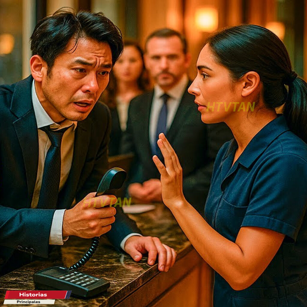 Cada segundo perdido era un golpe a la reputación del hotel. Y justo cuando todo parecía un desastre inminente, ocurrió algo que nadie esperaba. Desde el fondo del vestíbulo, empujando un carrito de limpieza, apareció una mujer que para la mayoría era invisible. Llevaba el uniforme modesto de las limpiadoras, el cabello recogido en un moño apurado y las manos marcadas por años de trabajo. Nadie sabía que detrás de esa imagen humilde había una historia que unía su vida con la cultura de aquel millonario y en cuestión de segundos con una sola frase en un idioma que hasta entonces nadie había escuchado allí.