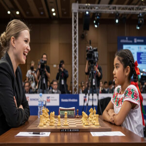 Varios fotógrafos captaron el momento exacto, la sonrisa burlona de Natasha y la expresión serena de Lupita mientras tomaba asiento frente al tablero. ¿Es esto una broma?, preguntó Natasha en inglés. lo suficientemente alto como para que la primera fila de espectadores la escuchara. “Me hicieron volar desde Moscú para jugar contra una niñita”. El organizador, visiblemente incómodo, se acercó a la campeona. “Señorita Volcova, le aseguro que Lupita es una de nuestras mayores promesas. Por favor, tómelo como una exhibición para promover el ajedrez entre los jóvenes.