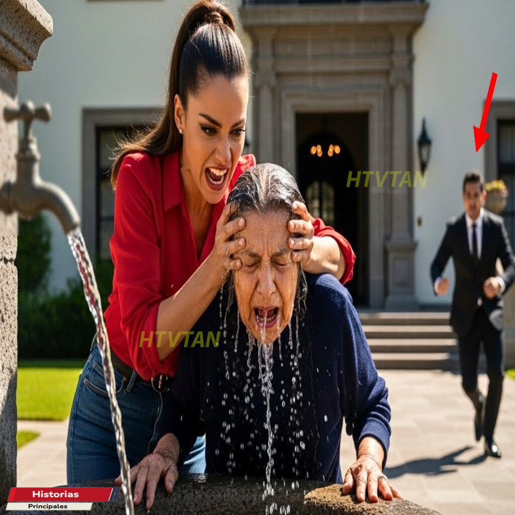 De repente, Verónica apareció con un paso firme y los ojos cargados de ira. Se acercó a la anciana y con una voz baja y cortante soltó, “Todavía no entiende. Usted no cabe en esta casa. Se acabó.” Antes de que Mariana pudiera reaccionar, Verónica empujó con fuerza a doña Teresa contra el tanque, hundiéndole la cabeza en el agua. El cuerpo frágil de la anciana se agitó con desesperación. Sus brazos buscaban escapar y un gemido ahogado rompió el aire.