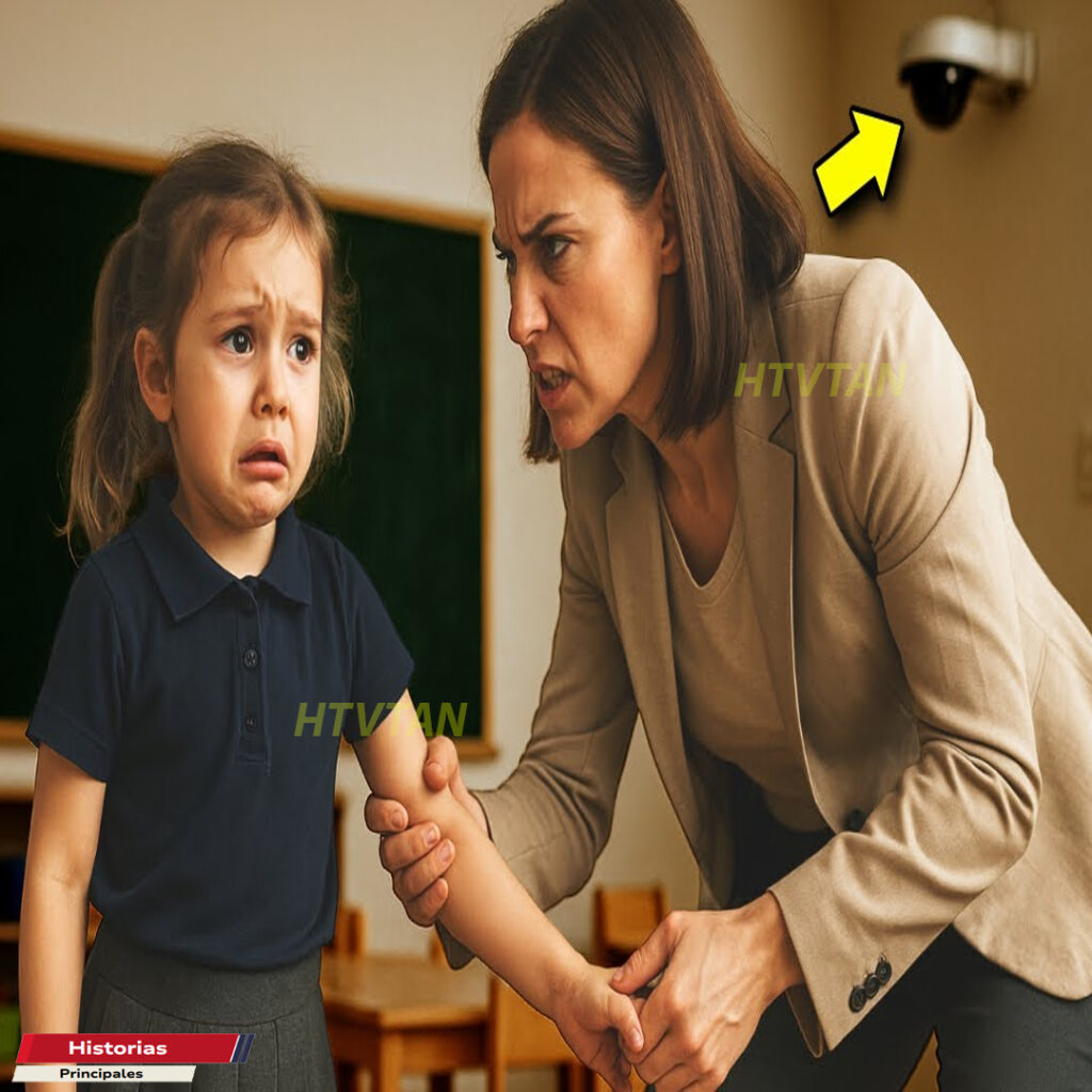 Intercambian algunas palabras. sin sonido, pero los gestos hablan por sí solos. Isabela baja la cabeza. Clara gesticula con furia, de repente se inclina y le agarra el brazo. Santiago da un paso al frente. Ahí, mire eso. La maestra aprieta el brazo con fuerza, lo suficiente para que Isabela se encoja. La levanta bruscamente de la silla y la empuja hacia una esquina del salón. La niña choca suavemente contra la pared, luego resbala y cae sentada. Clara le señala con el dedo, le grita algo que la cámara no capta.