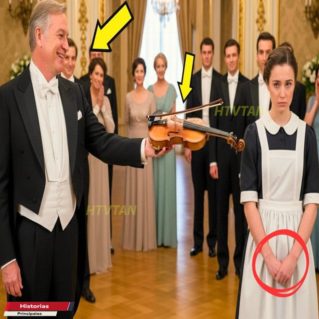 Cuando estiró la mano para tomarlo, el pulso le tembló visiblemente. Algunos invitados estallaron en carcajadas. “Ni siquiera puede sostenerlo”, gritó uno. “Se va a desmayar antes de tocar una sola nota”, añadió otro. El rubor subió a las mejillas de Mara y por un instante pensó en retroceder. La humillación pesaba demasiado. Sus dedos, al rozar la madera del violín se detuvieron en seco, como si un muro invisible la frenara. El miedo estaba a punto de ganarle. Mauricio inclinó el rostro hacia ella, confiado en la derrota que veía venir.