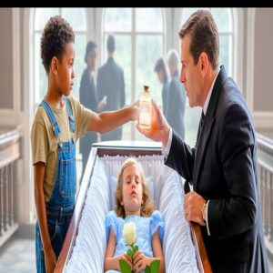 En el velorio, entre flores y lágrimas, el padre millonario contemplaba el cuerpo de su hija, muerta tras ahogarse accidentalmente en la piscina de la mansión. Fue entonces cuando un niño apareció de repente ofreciéndole un frasco con un líquido dorado y diciendo con calma, “Ba esto y hable con su hija.