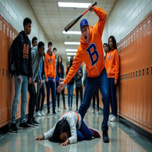 Whispers echoed through the hallway, then fell silent as he raised the bat like a judge about to pronounce sentence. Amara’s eyes caught the logo on the shaft, a clearly engraved circle of letters, Whitaker Foundation. The image made her shiver. Not just a weapon in the hands of a bully, but a symbol of the entire system of power that nurtured and tolerated him.