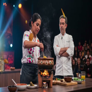 Durante la tarde había tostado más de 15 tipos diferentes de chiles secos sobre su comal de barro, llenando toda la cocina con un aroma ahumado y profundo que incluso Marcel a regañadientes, tuvo que admitir que era intrigante. “¿Cuántos ingredientes está usando exactamente?”, preguntó Yuspe, el chef italiano, acercándose con genuina curiosidad a la estación de esperanza.