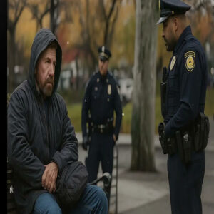 Él no está molestando a nadie. ¿Por qué lo están hostigando? La voz de la mujer rompió el momento con firmeza. Paseaba un perro pequeño, pero su tono no tenía nada de diminuto. Se detuvo a unos pasos de la escena con los ojos fijos en los oficiales.