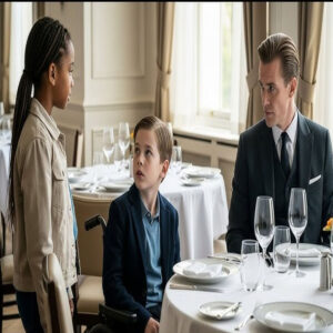 El millonario más poderoso de la ciudad, almorzaba con su hijo en silla de ruedas en un restaurante de lujo, cuando fueron sorprendidos por una niña pobre que se acercó con pasos firmes y dijo con una calma impresionante, “Dame de comer y yo curo a tu hijo.” El padre se rió y se burló de ella hasta que lo imposible ocurrió justo frente a sus ojos.