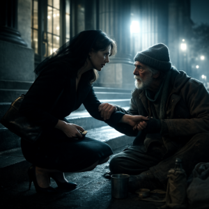 Su voz, quebrada pero suplicante, se alojó en mi pecho. Y ese fue el momento —allí mismo, en los escalones de la biblioteca— en el que una vida ordinaria se transformó en algo completamente diferente.