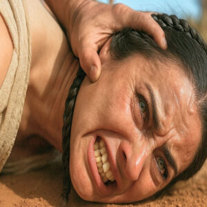 El calor la golpeaba como puños invisibles. El horizonte bailaba, las rocas se movían. Vio agua donde no había, vio sombras que no existían. tropezó, cayó, se levantó, tropezó otra vez, las manos le sangraban de rasparse contra las piedras, los labios se le partieron, la lengua se le hinchó, pero siguió, porque detenerse era morir y morir era abandonar a María.