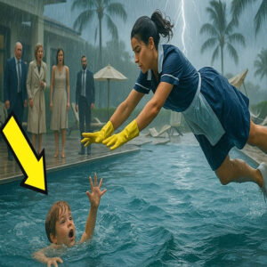 Diego se cayó a la piscina durante la tormenta y esta señorita lo salvó. Se tiró al agua cuando nadie más se atrevía. Alejandro miró a Carmen por primera vez. vio a una mujer joven, sencilla, con el cabello mojado, pegado a la cara y el uniforme de empleada completamente empapado, pero sostenía a su hijo con una ternura que le recordó a su esposa fallecida.