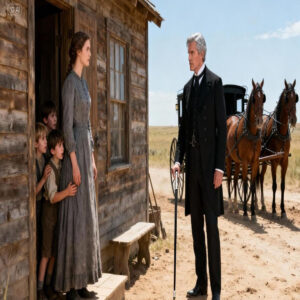 Se detiene frente al retrato de su esposa e hijo muertos. Y por primera vez en 20 años una lágrima rueda por su mejilla. ¿Qué me he convertido? Susurra a la oscuridad, pero la oscuridad no responde. Cinco días después, Silas Wexmore hace algo que no ha hecho en años. Actúa sin un plan. Ordena a su cochero que lo lleve a Sidar Creek, pero no a la oficina del ferrocarril, a la cabaña de Evelina.