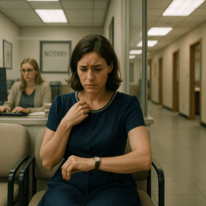 Los demás herederos debían llegar de un momento a otro y esa idea le apretaba el pecho. La sala de espera estaba vacía, salvo por la secretaria detrás del tabique de cristal, que tecleaba concentrada, lanzándole de vez en cuando miradas curiosas. Al fondo del pasillo se oían voces apagadas, el rose de papeles, el timbre de un teléfono, la vida normal de una notaría a la que Valeria se sentía totalmente ajena.