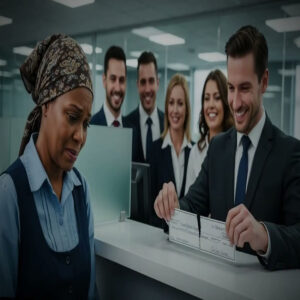 mantuvo su dignidad intacta mientras empujaba la puerta de cristal y salía a la calle, donde el sol del mediodía golpeaba con fuerza el asfalto. Ricardo, por su parte, regresó a su oficina con una sonrisa de victoria, sintiéndose un guardián implacable de las finanzas. Sofía, la cajera miró con angustia la papelera donde yacían los pedazos del cheque.