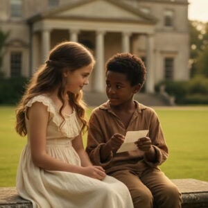 El viento de la tarde soplaba suavemente por el jardín inmenso de la mansión Westwood. Una hoja amarilla cayó justo entre los dos niños: Sarah, la niña que no había pronunciado una palabra en ocho años, y el pequeño hijo de la empleada, con ojos brillantes y una sonrisa luminosa a pesar de su ropa gastada.