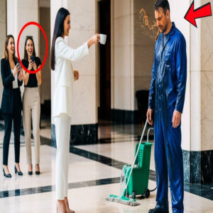 La hija mimada del millonario humilló al limpiador sin saber quién era en realidad. El café caliente golpea el rostro del limpiador como una bofetada ardiente. El líquido oscuro gotea por sus mejillas, mancha su uniforme, se derrama hasta el suelo de mármol recién pulido.