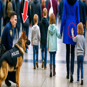The German Shepherd’s head turned slightly as he observed people passing, a routine check for anything unusual. Near the security checkpoint, Mark’s gaze caught a woman in a bright blue coat, walking hand in hand with three children. She seemed calm, almost too composed, moving swiftly, as if eager to disappear into the crowd.