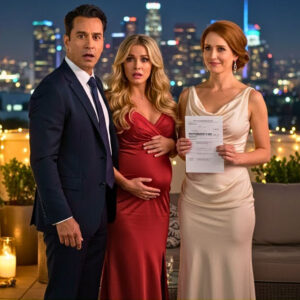 Era como si todos los presentes hubieran dejado de respirar al mismo tiempo. Mauricio soltó su copa que se estrelló contra el piso de mármol con un estrépito que resonó por todo el rooftop como un disparo. Su rostro, que segundos antes irradiaba arrogancia y triunfo, ahora se veía completamente pálido, con los ojos desorbitados por la incredulidad.