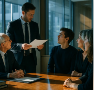 Llevé mi blusa azul marino y una bufanda que Miguel me compró en nuestro cuadragésimo aniversario. Necesitaba algo de él cerca de mi piel. Walter era mayor de lo que imaginé, con gafas delgadas al borde de la nariz, una calidez en los ojos que me hizo sentir firme. No ofreció condolencias, solo un asentimiento y un gesto para sentarme. Todo está en orden”, dijo abriendo una carpeta de cuero gruesa. Miguel fue meticuloso. Lo explicó todo pieza por pieza. El testamento actualizado, notariado firmado, fechado, todo para mí.