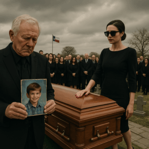 El ataúdoba brillaba bajo el gris cielo de Texas, amenazando con una lluvia que aún no caía. 37 personas rodeaban la tumba de mi hijo, sus ropas negras haciéndolos parecer cuervos posados sobre la hierba primaveral. Yo sostenía entre mis manos gastadas la foto escolar de Jeffrey en tercer grado, los bordes ya suaves de tanto acariciarlos con los años.