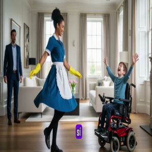 Santiago siente algo que no sentía hace dos años. Esperanza de verdad. Tres días después, la rutina especial de Camila con Mateo ya se volvió tradición. Transformó la limpieza de la casa en una gran aventura. Por las mañanas empuja su silla por la casa inventando historias sobre todo. El florero de la sala se convierte en castillo. La lámpara se convierte en nave espacial.