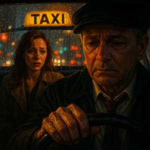 La lluvia golpeaba el parabrisas del viejo taxi amarillo mientras Pablo ajustaba la gorra de conductor que había comprado esa misma mañana.