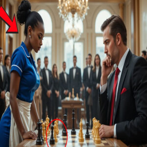 Elena fijó la vista en el tablero, extendió la mano y movió un peón hacia adelante, abriendo el centro. La jugada fue rápida y precisa. El salón quedó en silencio. Las risas se apagaron de golpe, como si alguien las hubiera cortado. Todas las miradas se volvieron hacia el millonario que ya no sonreía. Ricardo se inclinó sobre la mesa sorprendido. El juego había comenzado.