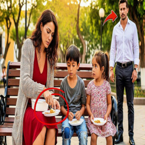 Sentada en una banca de madera desgastada, Karina sostenía una marmita blanca mientras sus pequeños Julián y Camila esperaban con los ojos brillantes de hambre. Él observó como ella separaba cada porción con cuidado, dándoles lo mejor mientras sus manos temblaban de debilidad. En ese instante, algo dentro de Leonardo se rompió.