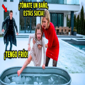 Lilia, su hija de 6 años, estaba descalsa en una tina de plástico llena de agua helada. La nieve caía sobre sus delgados hombros, derritiéndose en su cabello dorado. Sus labios se habían vuelto azules. Su pequeño cuerpo temblaba violentamente. Una de sus piernas, la prótesis que reemplazaba lo que había perdido en el accidente hacía 3 años, brillaba con desdén bajo la luz invernal.