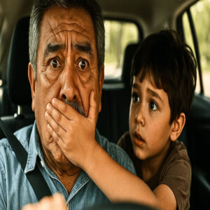 Cuando apenas subí a la camioneta, mi nieto de repente me tapó la boca y dijo en un susurro tembloroso, “No diga nada, abuelo. Nos están escuchando.