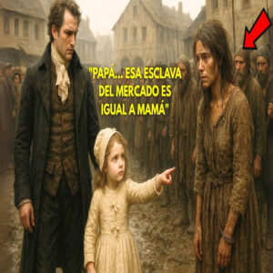 Los guardias la obligaron a ponerse de pie con un brusco tirón de la cadena que llevaba en las muñecas. “Papá!”, susurró Lily tirando de la manga de su padre. “Papá, mira!” Julian siguió la mirada de su hija. Es una escena triste, querida. No mires”, dijo intentando apartarla. “No, papá”, insistió Lily, su voz llena de una extraña urgencia. “Mira su cara, esa esclava del mercado es igual a mamá.