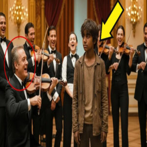 Mateo Rodríguez estaba de pie en la entrada del salón principal, sus grandes ojos esperanzados fijos en el violín Stradivarius que relucía bajo los candelabros de cristal. Su ropa sencilla y ligeramente holgada contrastaba fuertemente con los vestidos de diseñador y los trajes a medida que lo rodeaban.