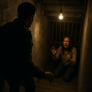 Una voz débil respondió desde el otro lado, cargada de desesperación. Mi esposa. Corrí al garaje, tomé una barra de hierro y arranqué el candado con tres golpes violentos. La puerta se abrió y el olor me golpeó el rostro, orina, sudor y algo agrio. Encendí la luz y casi me derrumbé. Margaret estaba al pie de las escaleras, sucia, temblando, con el camisón rasgado y manchado.