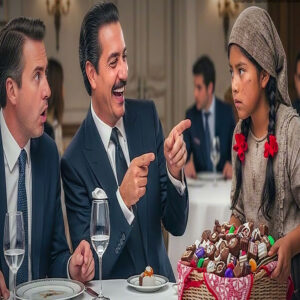 Ricardo la miró con burla, como si su presencia interrumpiera su espectáculo. “¿Tú vendes chocolates aquí?”, río. “Estamos en una cena de negocios, niña, no en la calle.” Ella bajó la mirada un instante, pero no retrocedió. Perdón, señor. Solo quería ayudar a mi mamá. Los demás en la mesa rieron menos Klaus que la observaba con curiosidad.