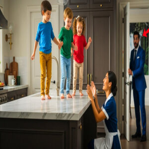 Lucía soltó gradualmente las manos de los niños, manteniendo las suyas cerca por seguridad, pero sin tocarlos. Por unos segundos mágicos, Sofía, Mateo y Daniel se mantuvieron de pie completamente solos sobre la encimera, vacilantes, temblando ligeramente, pero de pie. Es imposible, murmuró Alejandro.
