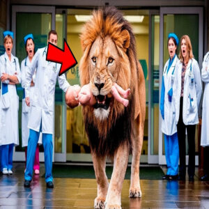 El animal avanzó hasta quedar en medio del pasillo de entrada mientras todos mantenían la distancia. Los médicos miraban entre ellos tratando de decidir si corrían a ayudar o si era más seguro esperar. El ambiente era tenso y cada segundo parecía más largo. El león soltó un rugido bajo que hizo retroceder a los más valientes y ahí quedó la escena congelada con un hospital entero paralizado por un animal que nunca debió estar allí y un bebé en sus fauces que nadie sabía de dónde había salido.