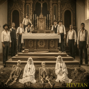 Sus cráneos, inclinados como si estuvieran observando a los intrusos, conservaban mechones de cabello adheridos. Los vestidos, amarillentos por el tiempo, pero reconocibles, tenían bordados de cruces y cálices. Pequeños rosarios de madera se entrelazaban entre los huesos de sus manos. “Madre santa”, murmuró Ernesto, persignándose instintivamente. “Son niños.” Toño retrocedió chocando contra las herramientas. El estrépito resonó en la iglesia vacía como un grito de alarma.