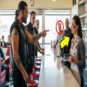 Frente al restaurante se alinearon siete motocicletas negras cubiertas de polvo y cromo. Los cascos reflejaban la luz dorada del amanecer. Bajaron de las motos como si fueran parte del paisaje del desierto, hombres grandes curtidos por el sol, tatuajes que hablaban de guerras propias y ajenas. Al frente de todos, un hombre distinto.
