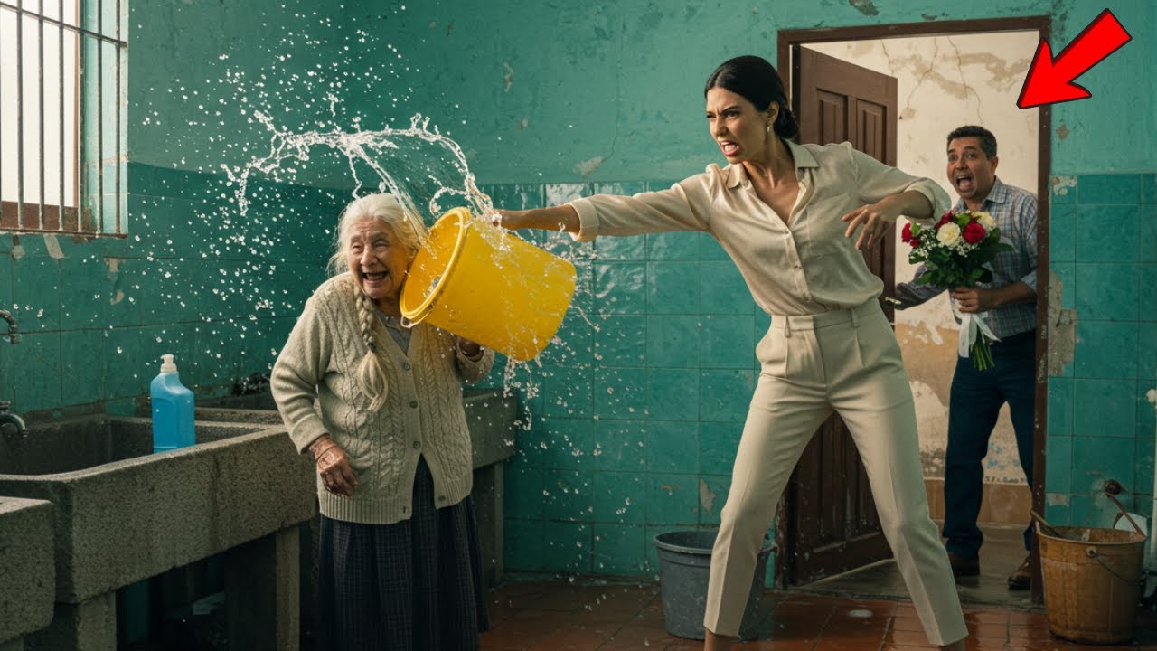 Entonces apareció Verónica, pelo recogido, guantes de ule en las manos, una sonrisa de comisura. “Despierta, vieja”, susurró. “Ya que le gusta el agua, olla y limpieza.” Volteó la cubeta de una vez y el agua corrió como un río casero pegándole a los pies de María. Taco ladró y Arturo apareció de un brinco. Basta. Su voz cortó el pasillo como navaja. Baja esa cubeta Verónica.
