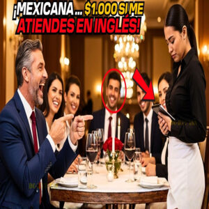 Mexicana, te doy $,000 si me atiendes en inglés.” Se burló el millonario mientras la mesa entera estallaba en risas. Las copas vibraron, el vino salpicó y el restaurante se convirtió en un escenario de vergüenza. Frente a él, una joven mesera mexicana lo observaba en silencio. Sus manos temblaban apenas, pero en su mirada había algo imposible de explicar. Dignidad.