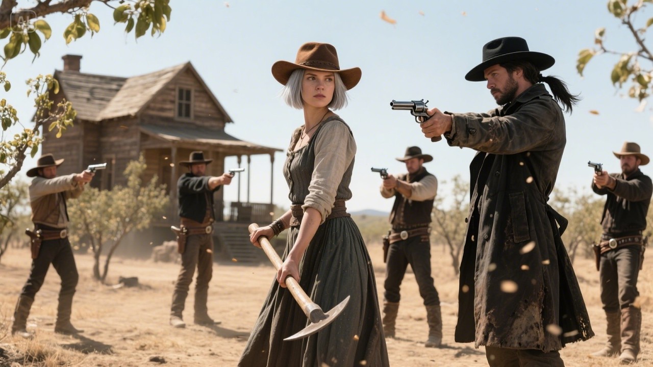 Victoria se colocó entre Jimmy y los saqueadores y de pronto ya no parecía una simple colona. Su postura era la de una pistolera equilibrada sobre la punta de los pies, lista para moverse en cualquier dirección. El viento matutino levantó los bordes de su falda, revelando el contorno de armas enfundadas debajo.