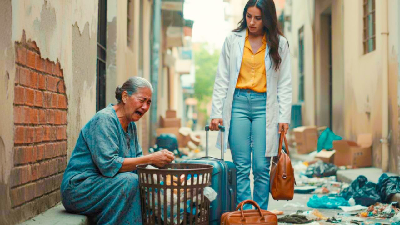 Mamá, ¿eres tú? Mamá, ven, ven, por favor, ven, mamá, ven. Lucía, perdóname. Lucía, ven. ¿Qué haces ahí? Dios mío, ¿qué te pasó? Mamá, explícame qué te pasó y esa ropa. Y las cosas cambiaron, hija. Las cosas cambiaron. No, no, nada está bien. Explícame qué haces en el basurero. Yo te envío dinero. Solo salí a pasear buscando comida.