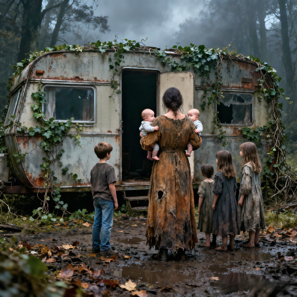 Seguir adelante fue brutal. Sin el sueldo de Ramiro, fueron desalojados. Durante tres meses durmieron en el suelo de la sacristía gracias al padre Javier, pero la presión del pueblo crecía. Se vio en la calle, acurrucada con sus hijos bajo un puente de piedra, cubierta con cartones. Solo le quedaban 80,000 pesos de aquella compensación, guardados en un calcetín amarrado a su cintura. Sabía que necesitaba usarlos para un refugio, por miserable que fuera.Fue en una tarde gris, en la tienda de abarrotes “La Sierra”, que escuchó a dos hombres hablar. Uno, “El Chivo”, mencionaba un viejo remolque abandonado en el bosque, perteneciente a un “gringo loco” que había desaparecido.