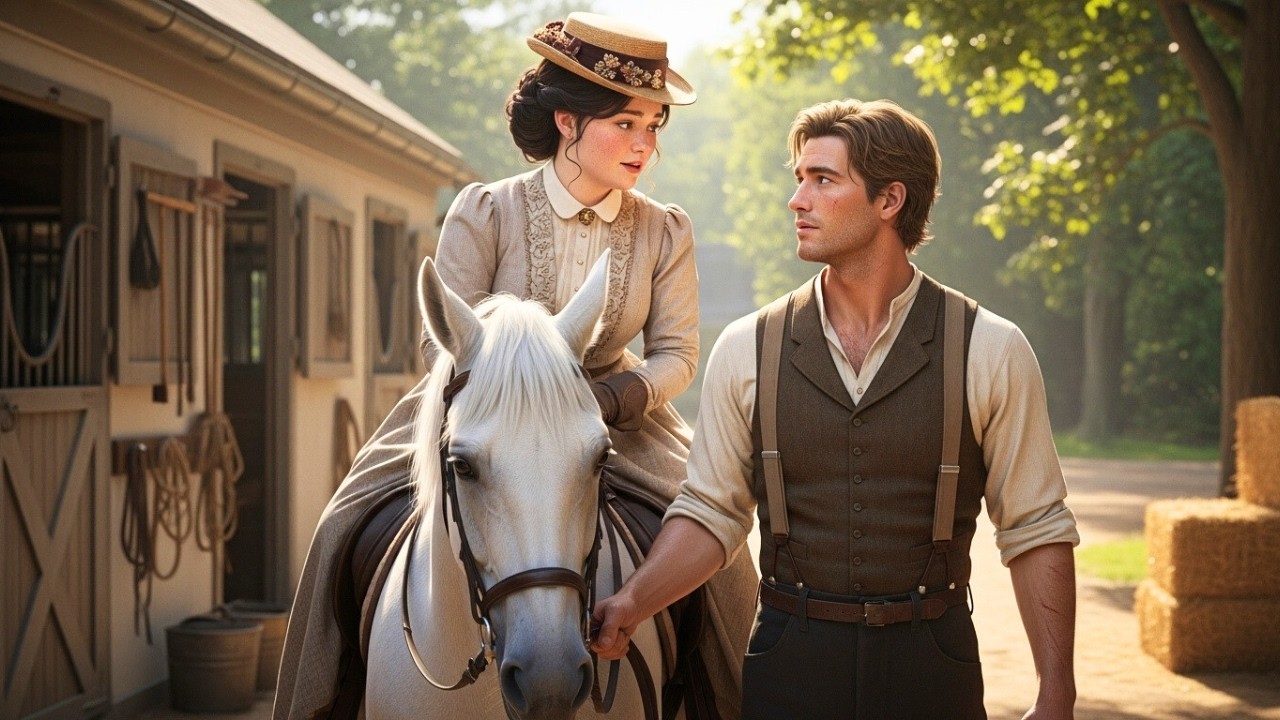 Pero cada mañana, al colocar el sombrero decorado con flores secas sobre su cabello recogido y salir con su libro bajo el brazo, llevaba escondido algo más que una excusa. Los encuentros con Evan se habían vuelto parte de una rutina no escrita, una especie de pacto silencioso. No se citaban, no se buscaban abiertamente, pero se encontraban a veces en los establos, otras bajo los árboles cercanos al campo de entrenamiento, donde los caballos galopaban libres y el mundo parecía detenerse. Ella llegaba con una manzana en la mano o un poema entre las páginas