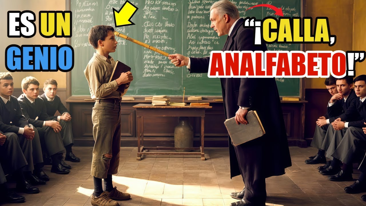 En medio de la clase, un grito rompió el silencio. “¡Cállate, analfabeto!”, rugió el profesor con desprecio. Las risas de los alumnos lo clavaron como agujas. Su ropa rasgada y su silencio parecían confirmar su humillación, pero nadie sabía qué estaba a punto de ocurrir, un secreto que cambiaría el destino de todos.