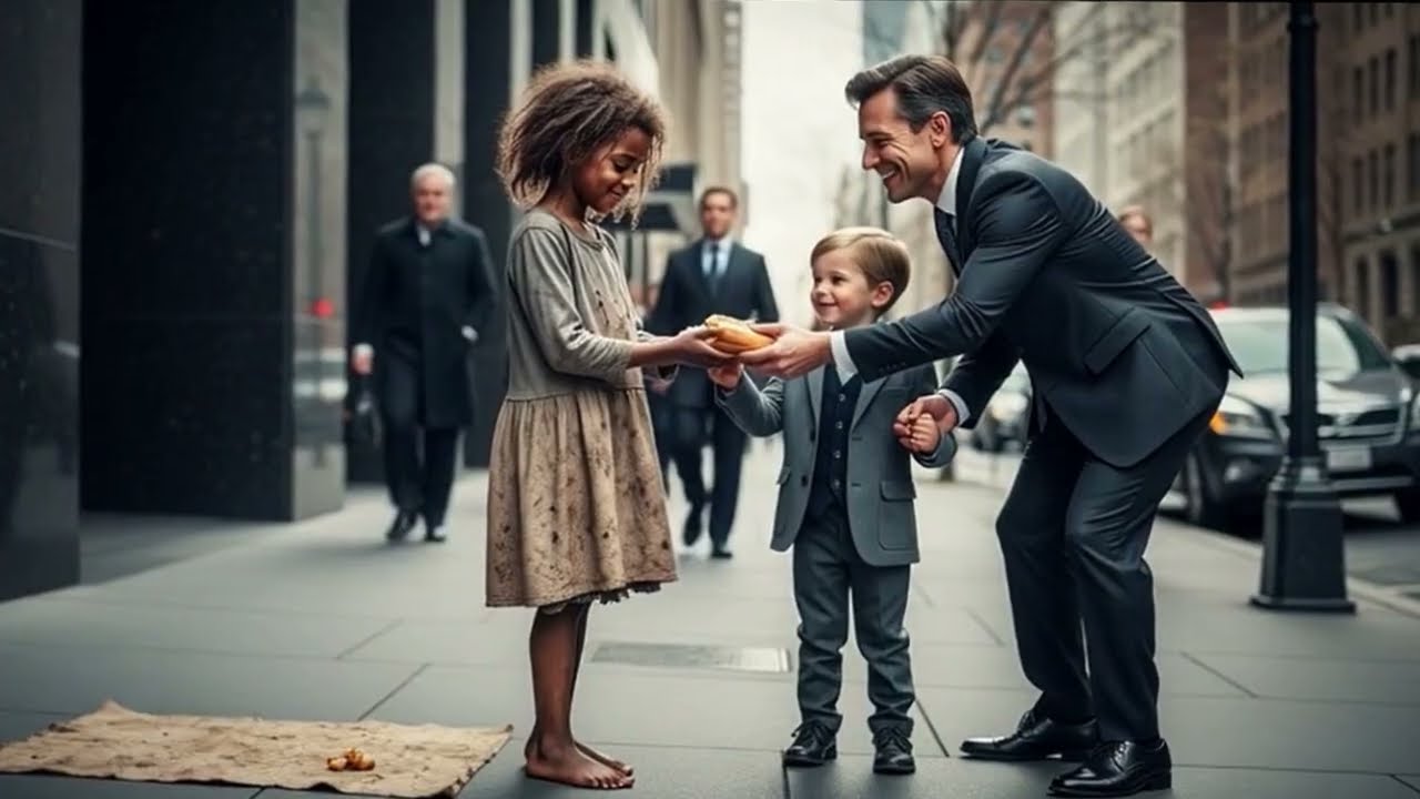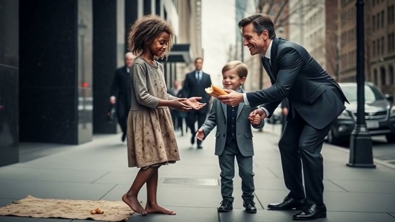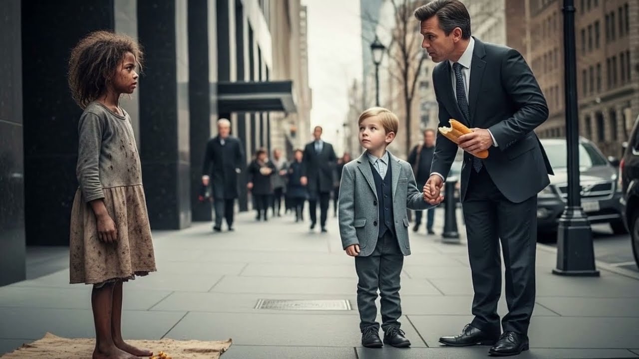 Porque a veces los milagros no vienen envueltos en oro, vienen descalsos, con hambre y pidiendo algo tan simple que duele el orgullo darlo. Esta es la historia de un padre que lo tenía todo, menos lo único que importaba, y de una niña invisible que cambió su vida con un pedazo de pan. La ciudad despierta como siempre, apresurada, ruidosa, indiferente.