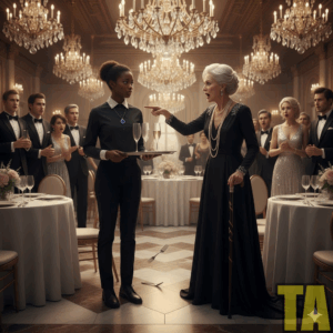 La camarera Maya apenas tenía 22 años. Trabajaba entre clases universitarias y noches sin dormir. Había aprendido a vivir en la invisibilidad, rostros que se apartaban, voces que ordenaban sin amabilidad. Pero esa noche las miradas se clavaban con más fuerza, más pesadas. Los invitados cuchicheaban al pasar, no solo por su piel, sino porque no pertenecía a ese mundo de vestidos brillantes.