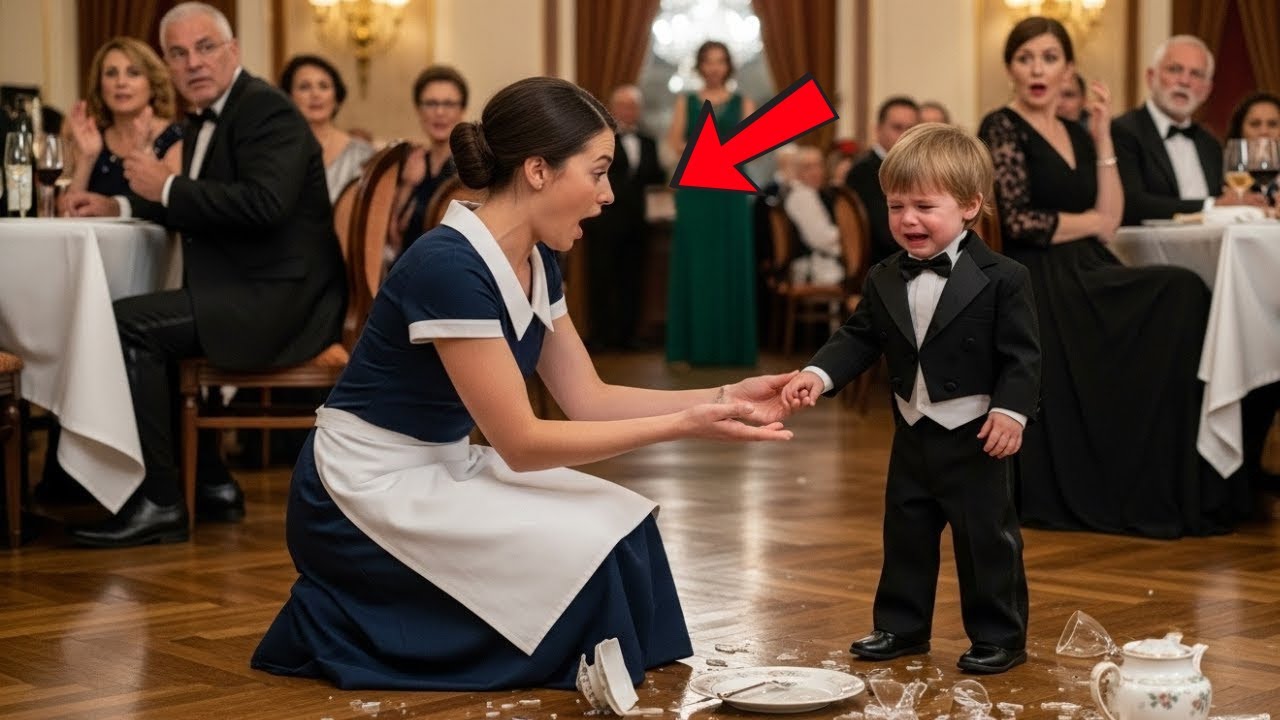 Algunos abrieron la boca con asombro, otros fruncieron el ceño con desdén. El sonido de cristales rompiéndose en un entorno tan lujoso sonaba casi blasfemo. En medio de la sala, justo al lado de una mesa cubierta de copas de cristal, estaba sentado un niño. Solo tenía 7 años, pero sus ojos ardían con una ira que avergonzaría a muchos adultos.