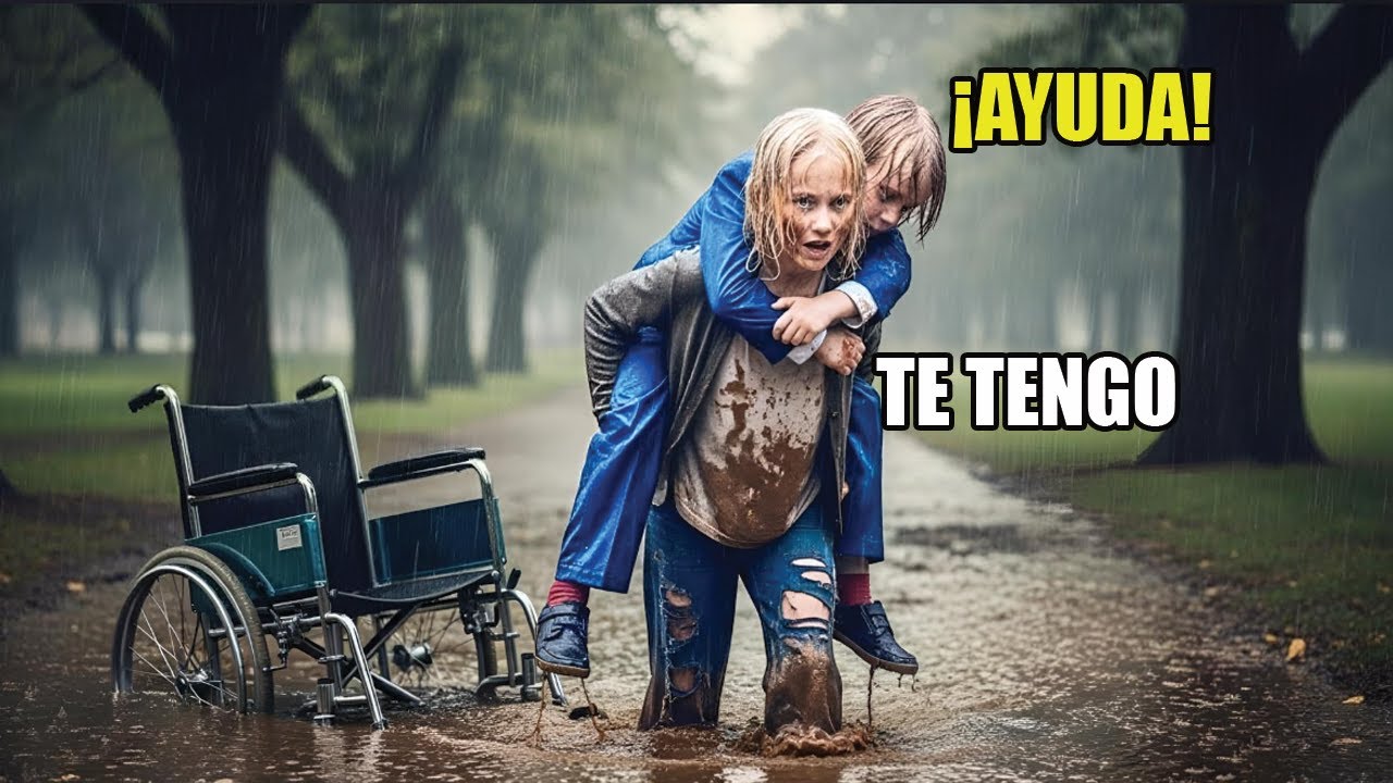 trepó con dificultad, jadeando su cuerpo temblando de cansancio y frío. Los maestros le hacían señas frenéticamente, probablemente diciéndole que esperara a los rescatistas. Pero ella no estaba dispuesta a esperar. Se dirigió directamente hacia Jacob, que seguía atrapado en su silla de ruedas. Marcus observaba incrédulo mientras la niña levantaba a su hijo sobre su espalda.