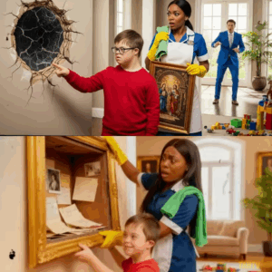 Isan se levantó del suelo, caminó hacia donde Grace limpiaba y tomó su mano con suavidad. No había miedo en su gesto, solo urgencia. la llevó hasta el cuadro y, mirándolo fijamente, señaló la sombra con una firmeza que nunca había mostrado antes. Entonces, por primera vez habló. “Mamá.