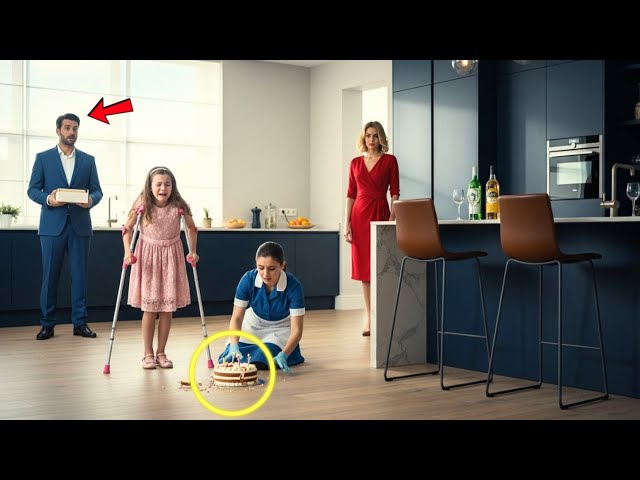 una mujer fascinante de la alta sociedad que parecía adorar a Luna. Pero cuando abrió la puerta de su villa en las afueras de Madrid, la escena que vio lo congeló en el lugar. Valentina, elegante en su vestido rojo, acababa de tirar la tarta de cumpleaños al suelo. Luna, la pequeña con sus muletas rosas por la pierna, que no funcionaba correctamente después del accidente que había matado a su madre, estaba de pie temblando con lágrimas cayendo por su rostro.